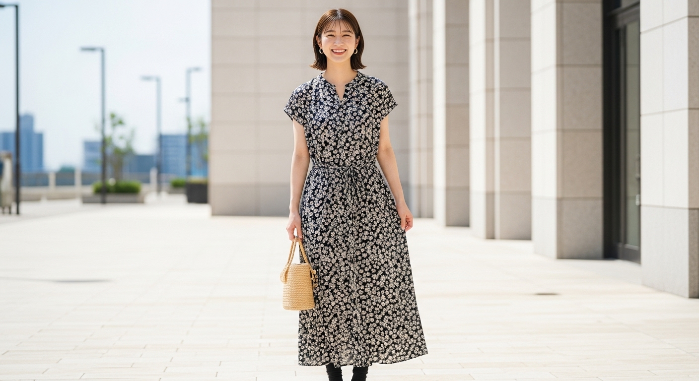 高身長を活かした花柄ワンピーススタイルで、毎日のコーディネートをもっと楽しみましょう♪