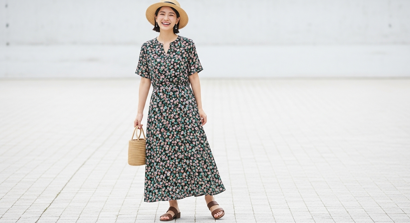低身長さんが花柄ワンピースを素敵に着こなすためには、選び方と着こなし術の両方が重要です♪
