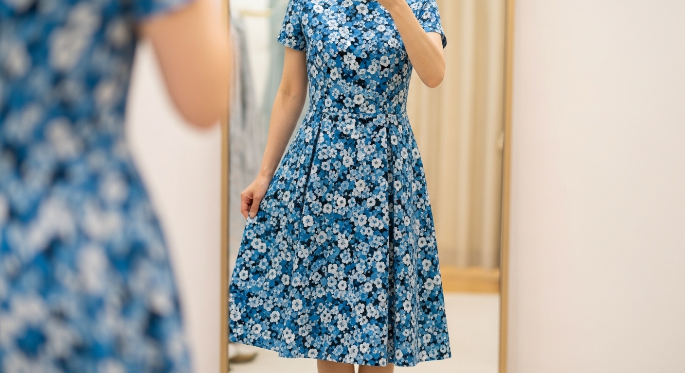 ブルーの花柄ワンピースは、選び方と着こなし方次第で、大人の女性にこそ似合うアイテムです♪