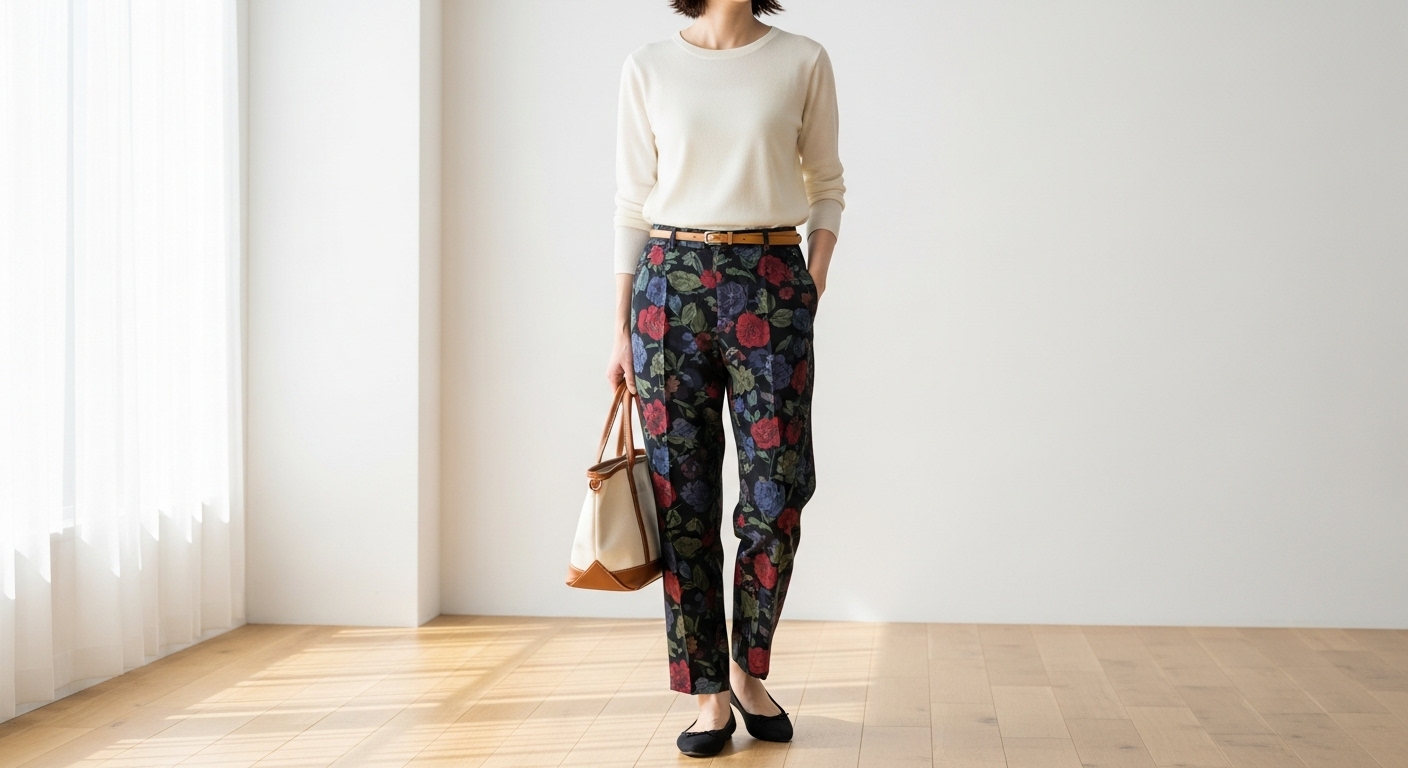 花柄パンツを主役にするなら、