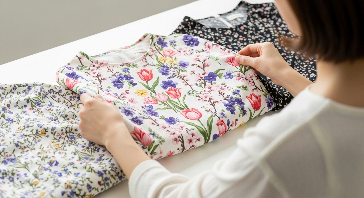 - カジュアルシーン:少し大きめの花柄にチャレンジして華やかさをプラス