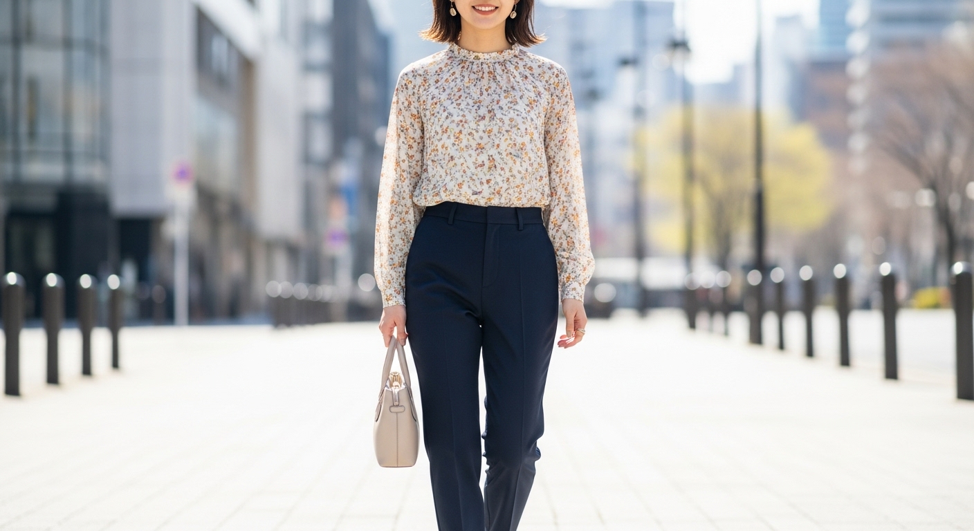 花柄ブラウスを着る際は、上品さを保ちながらも親しみやすい印象を心がけましょう。
