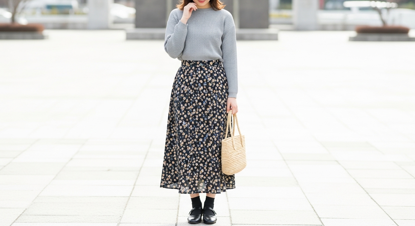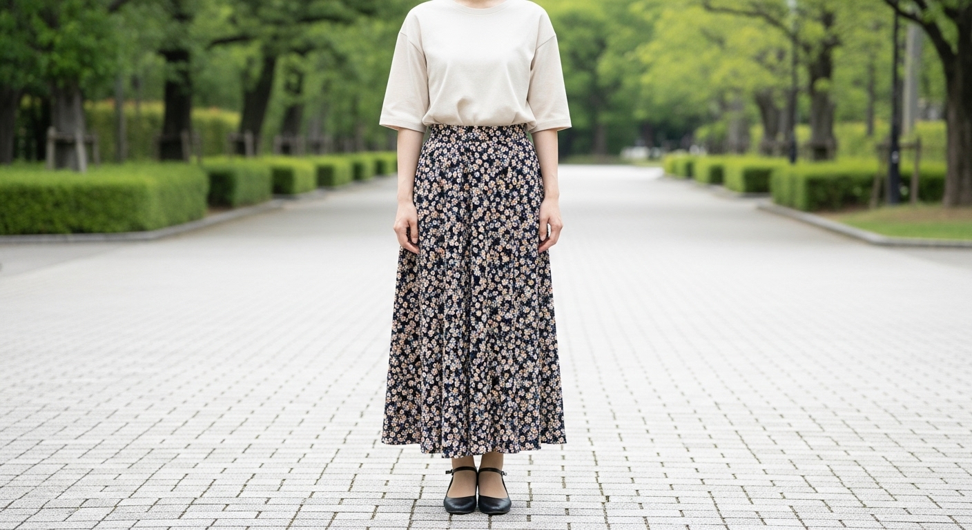 日常的に花柄スカートを楽しむ際は、リラックス感と動きやすさを重視したコーディネートが適しています。