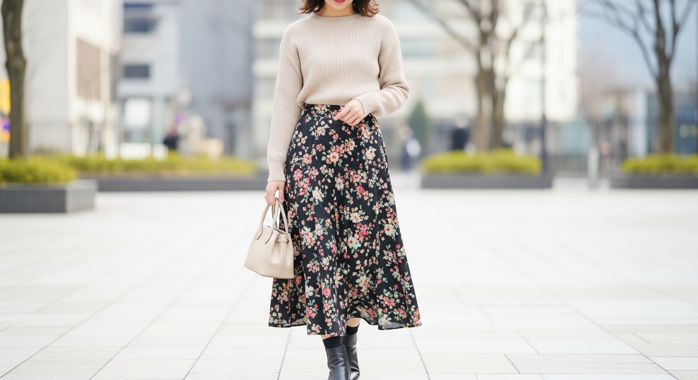 花柄スカートコーデで"ぶりっ子"に見えてしまうパターンを避けることは、