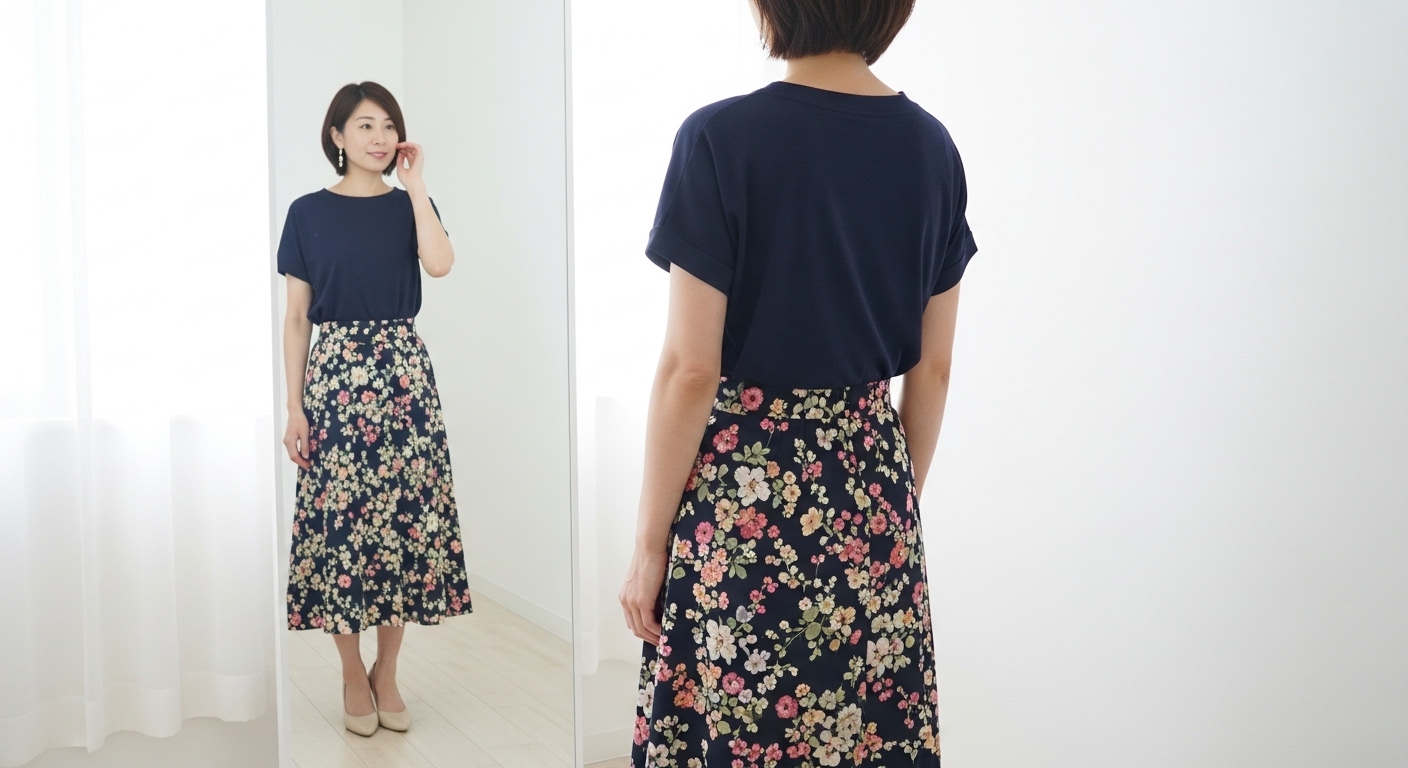 色合いは落ち着いたトーンを選び、花柄の大きさは中程度のものから始めることで、無理なく花柄スカートに慣れることができます。
