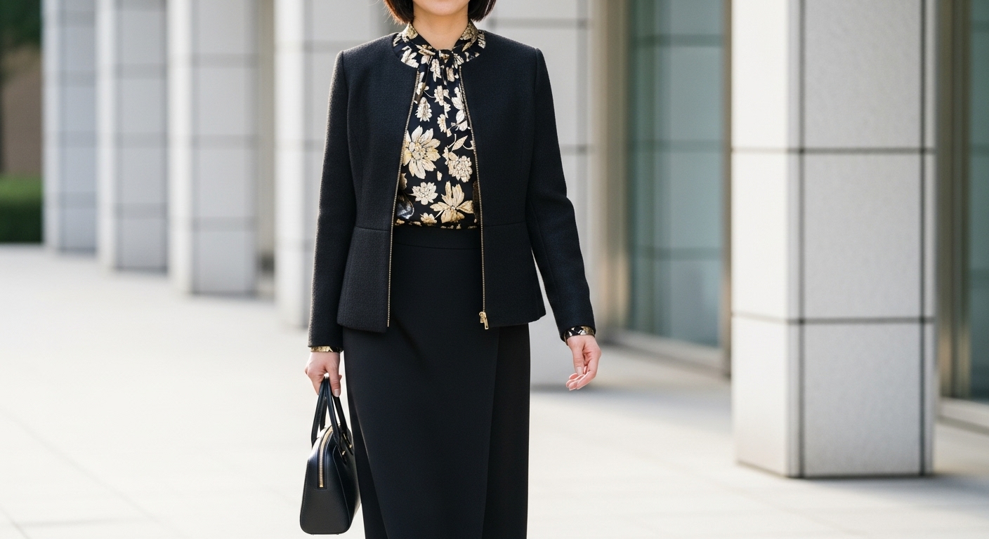通勤・オフィスシーンで浮かない大人の花柄コーデ