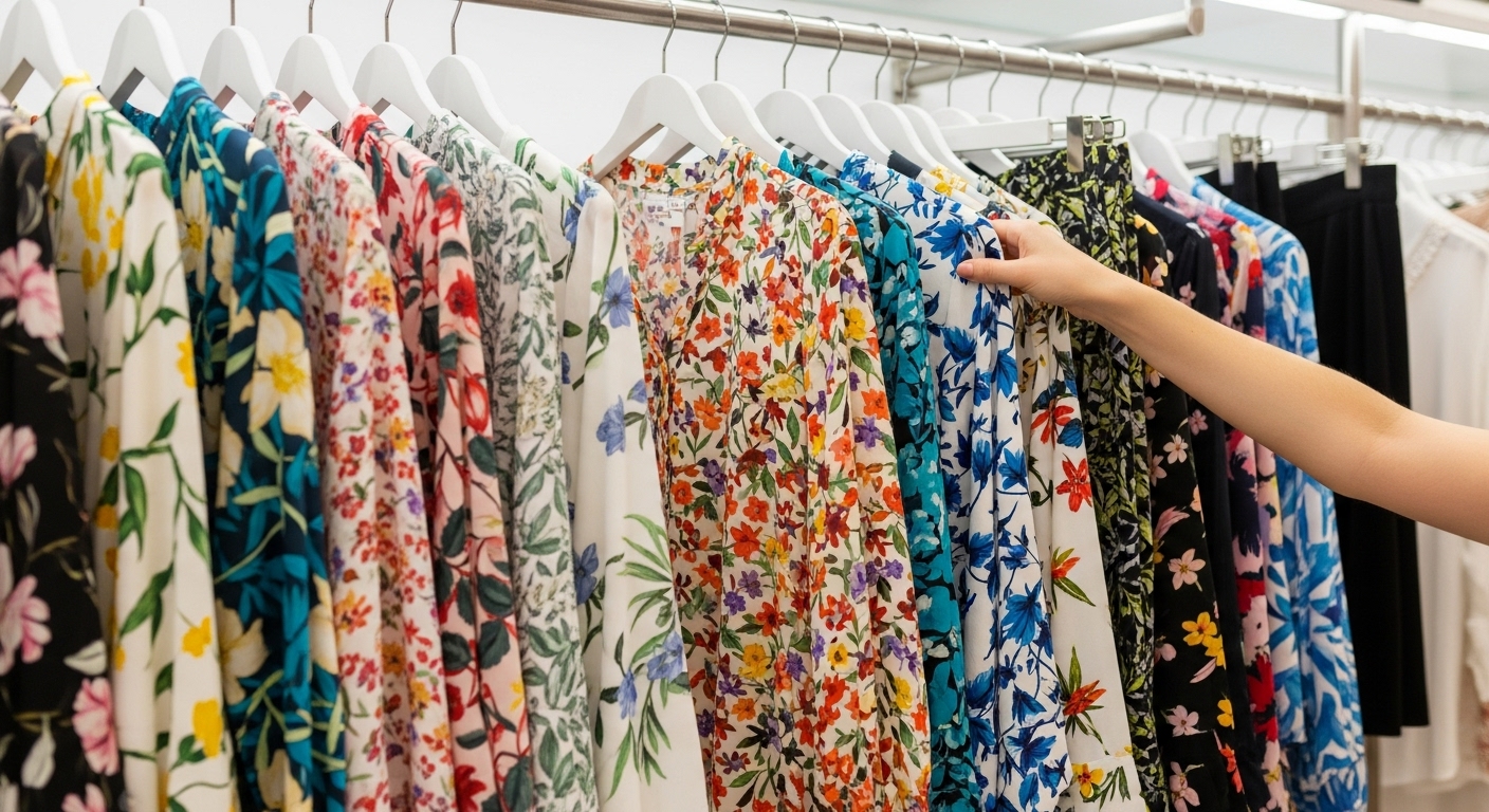 胸元に大きな花柄が集中しているデザインは、バストをより強調してしまう可能性があるため、避けた方が無難です...代わりに、全体に均等に花柄が配置されているデザインを選びましょう♪