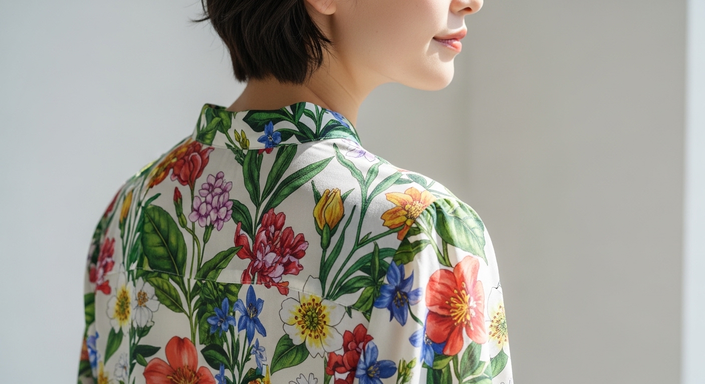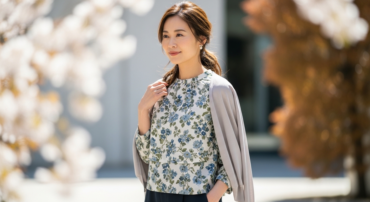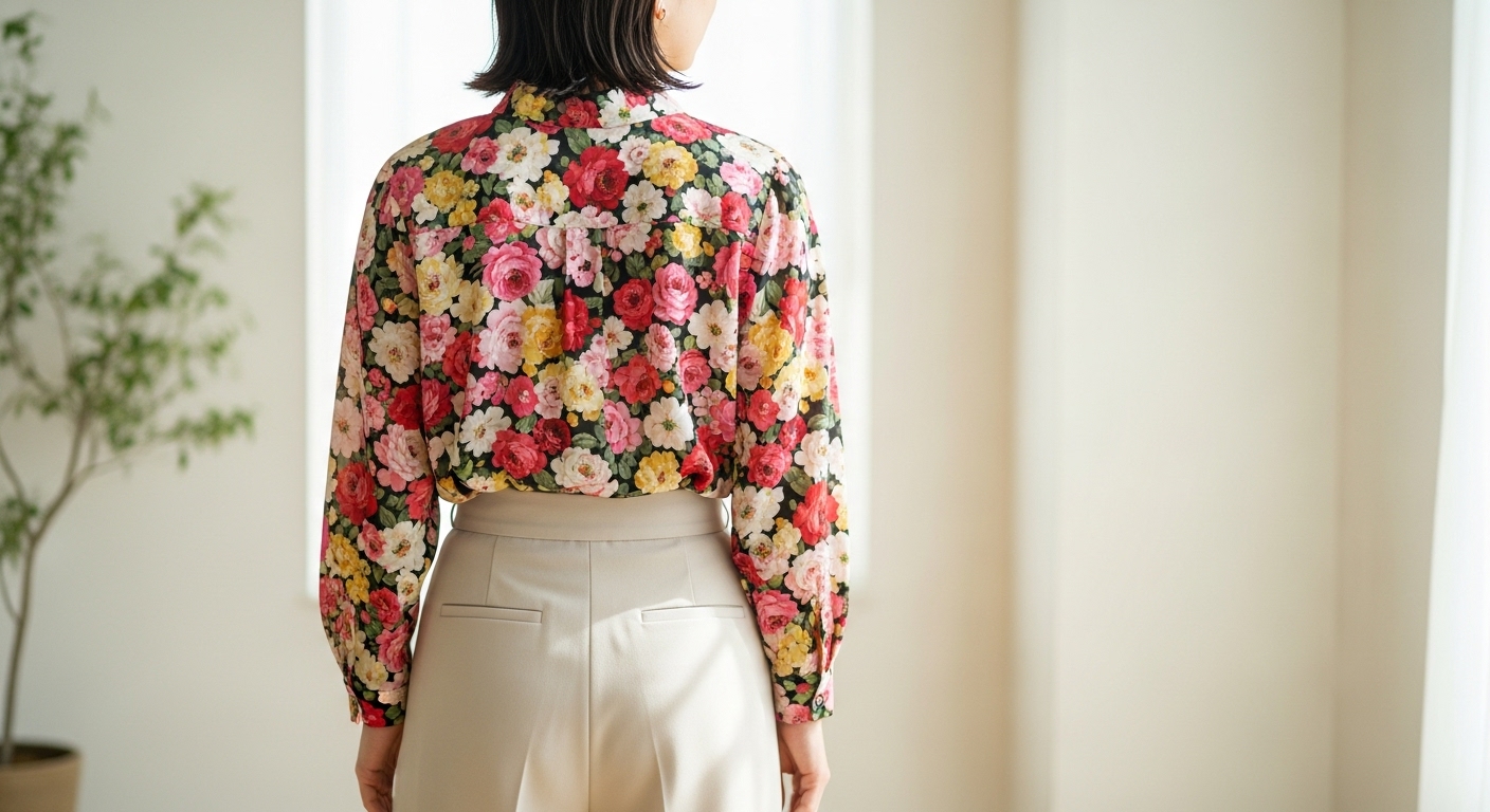 流行に左右されず、長く愛用できる花柄ブラウスの特徴を