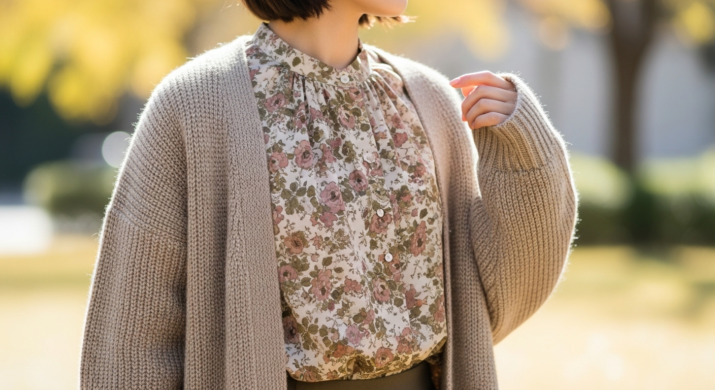 秋はカーディガンとの組み合わせで、上品で温かみのあるスタイルを作りましょう。
