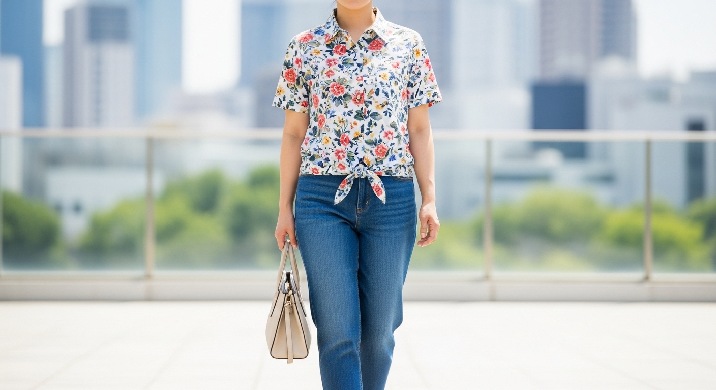 体型別|半袖の花柄シャツで体型カバーするテクニック