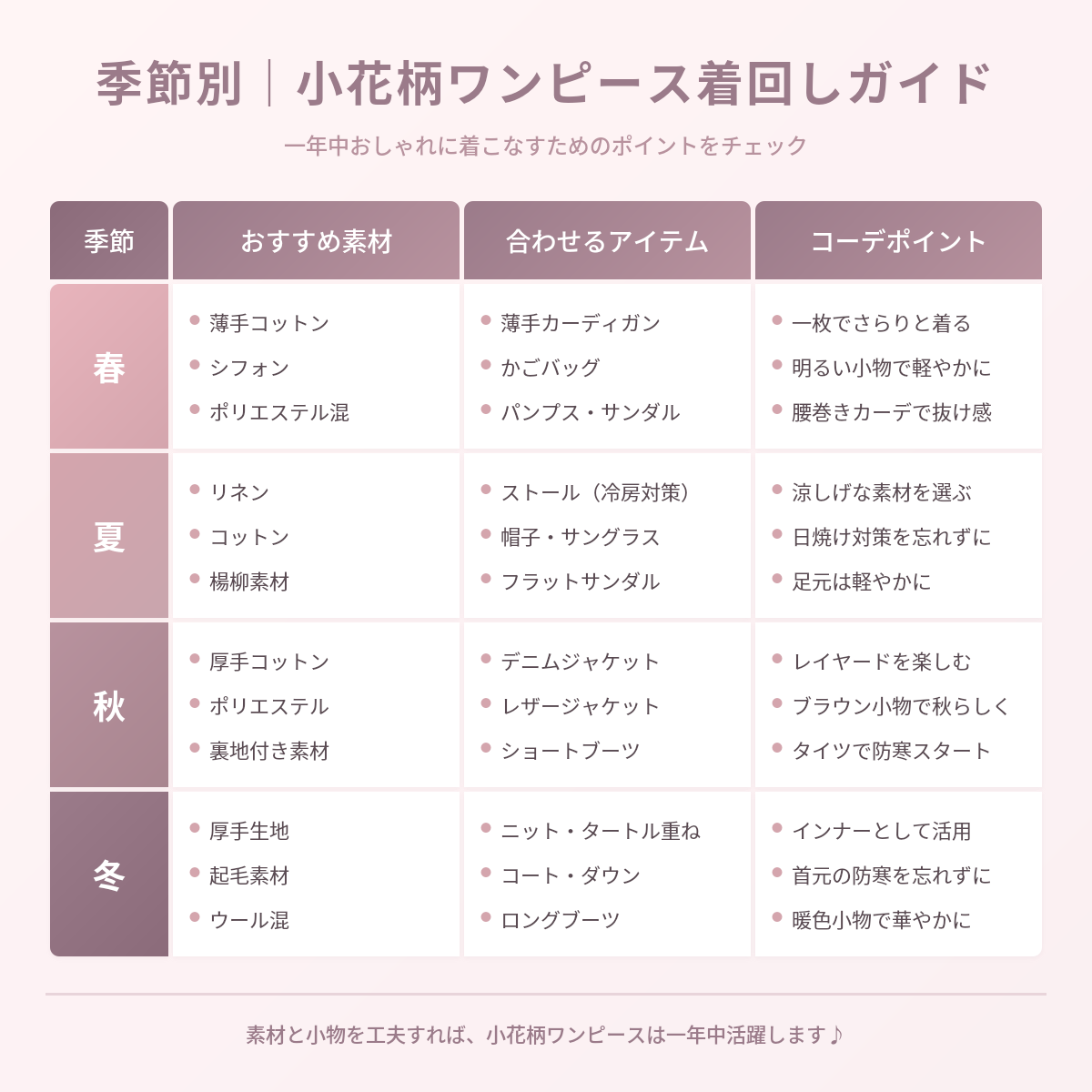 「小花柄ワンピースって可愛いけど、私には似合わないかも」と悩んでいませんか?でも大丈夫!選び方のコツを押さえれば、誰でも素敵に着こなせるんです♪この記事では、年代別のスタイリング術から着回しテクニックまで分かりやすく解説しますよ♪