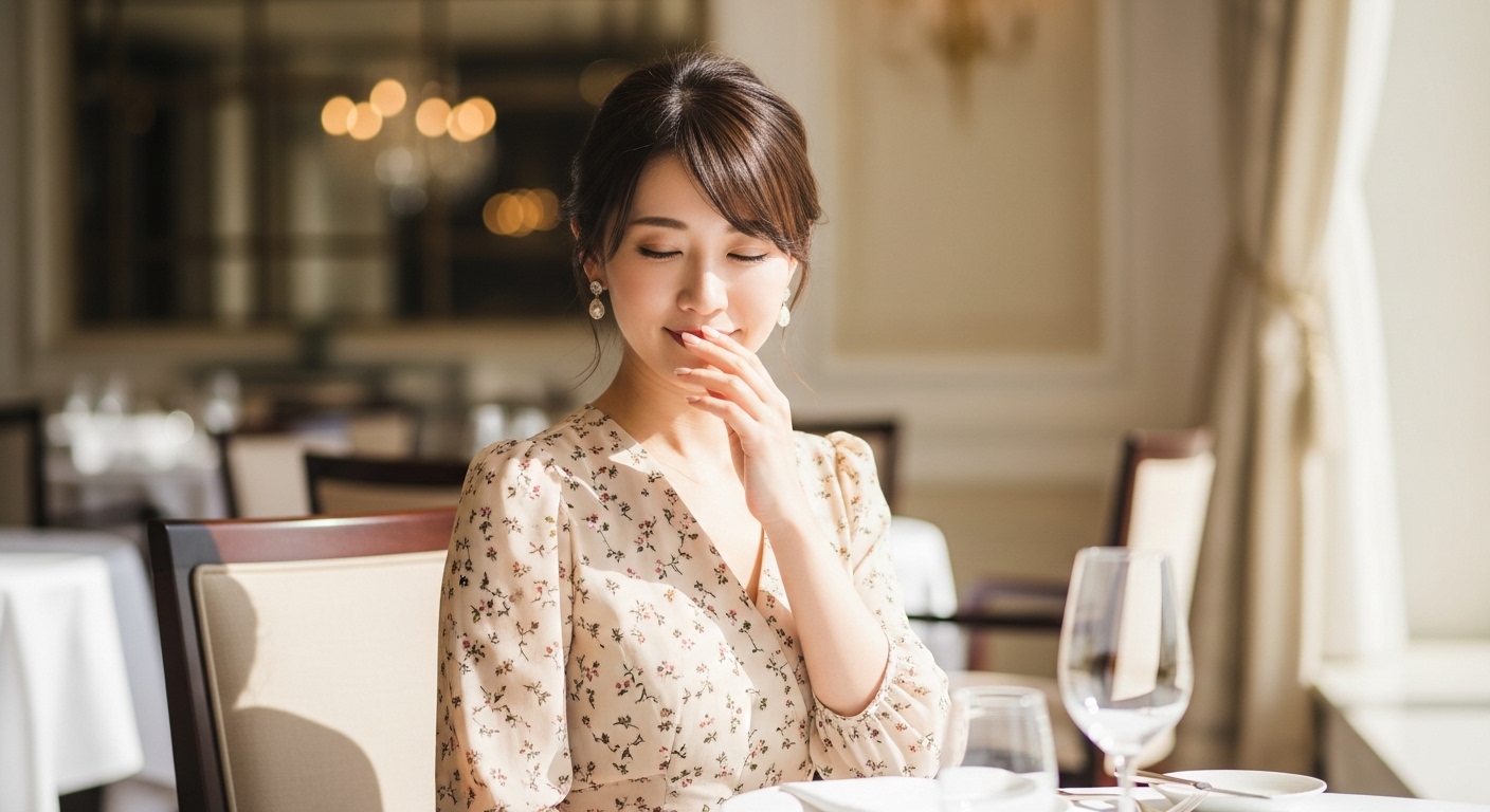 食事会では場を明るくする装いが好まれますが、派手すぎるのは避けたいもの。