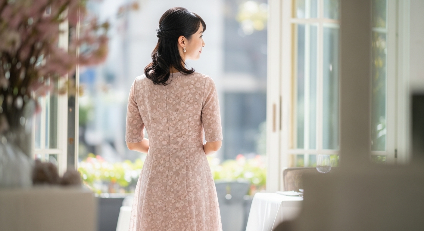 春の食事会では、季節感のある服装が喜ばれます。