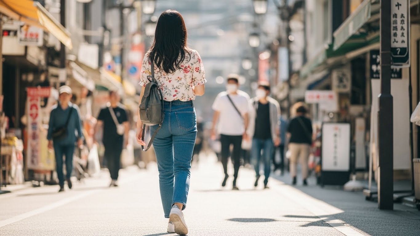 たくさん歩く観光日には、動きやすさを優先したコーデがおすすめです。