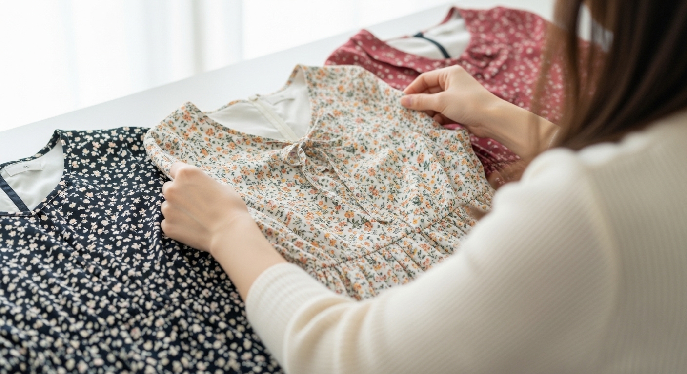 大花柄は存在感が強く、派手な印象を与えやすいです。