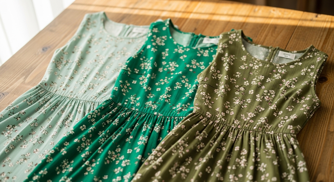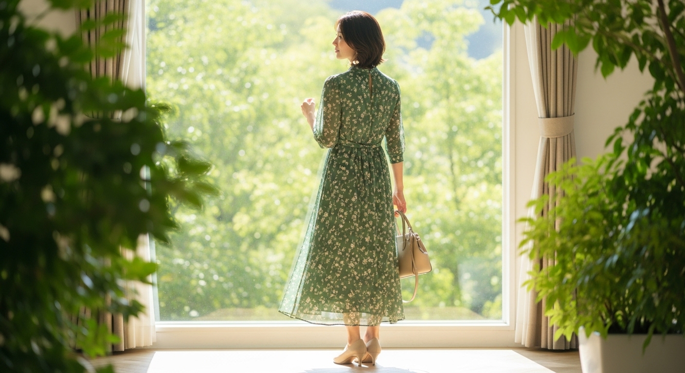 「緑の花柄ワンピースって素敵だけど、私が着ても大丈夫かな」