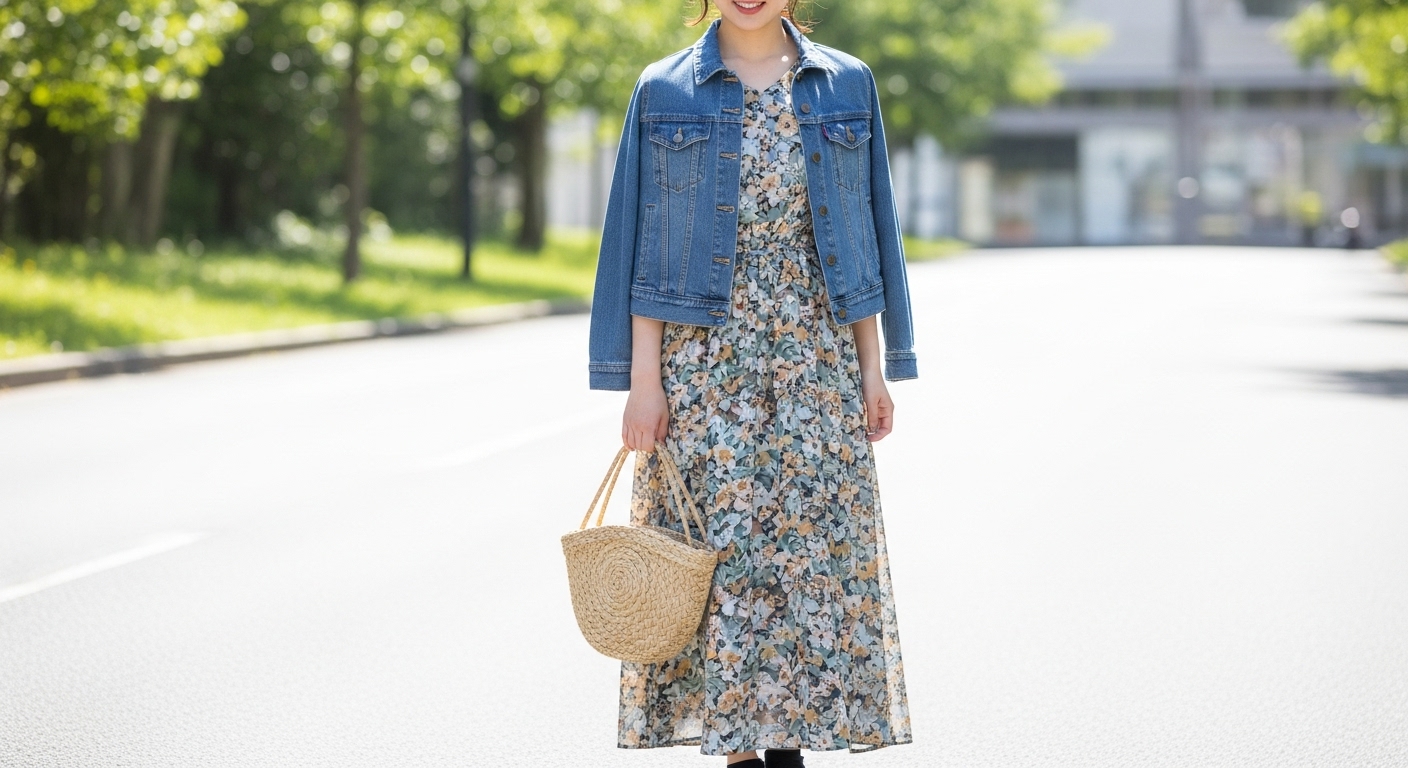 花柄ワンピースは一枚で着るだけでなく、レイヤードスタイルでも楽しめます♪ 着回しの幅を広げる方法をご紹介しますね。