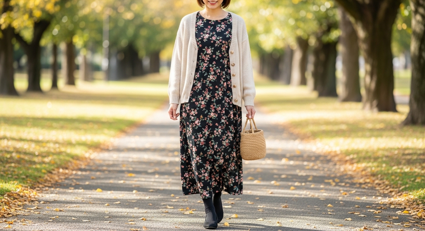 手持ちの花柄ワンピースを秋らしくする3つのアレンジ術