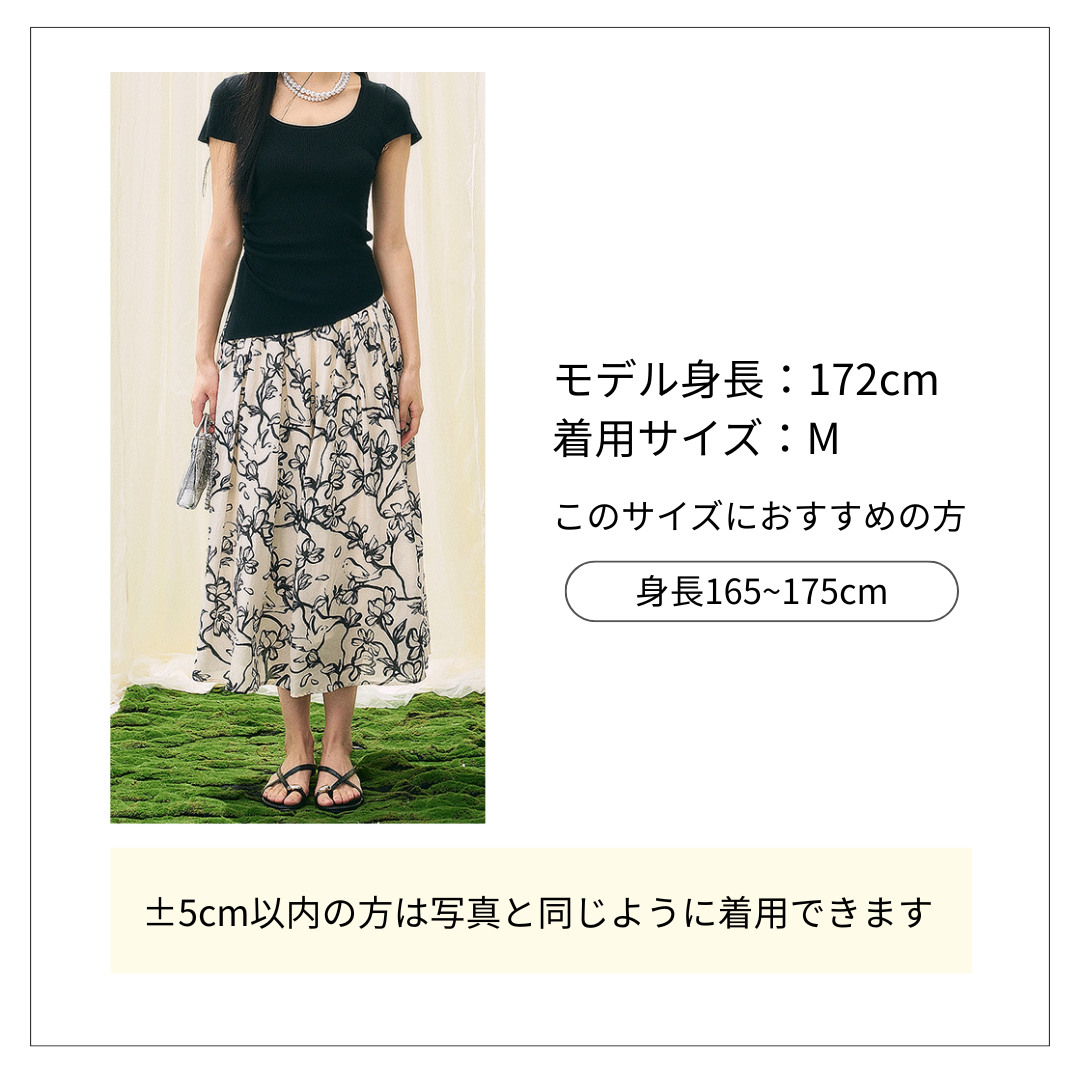 上品な線描きの花柄が目を引く花柄フレアースカート。 軽やかな素材感と優雅なシルエットで、日常からお出かけまで幅広く活躍。 花柄ファッションの世界観を演出する、女性らしさ溢れる一枚です。
