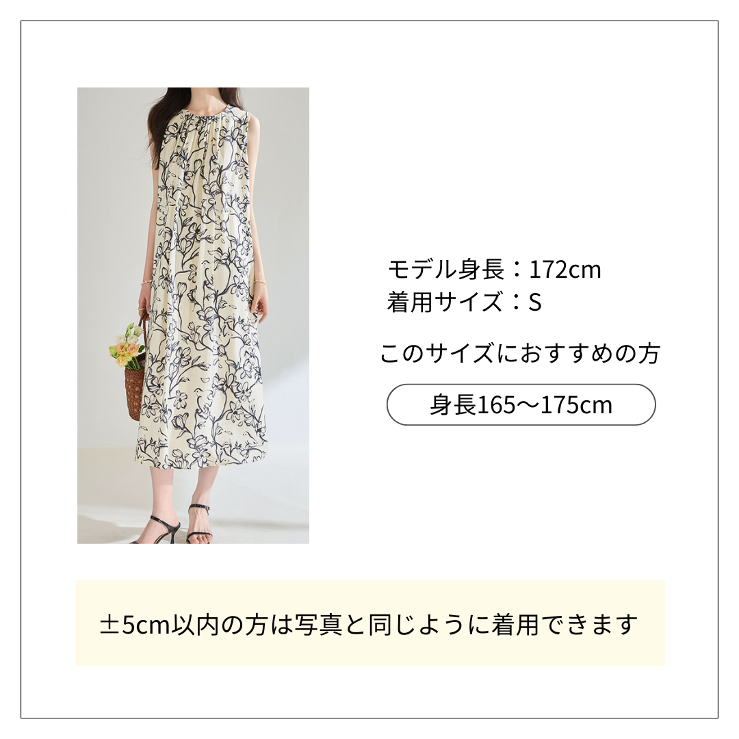 繊細な線描きの花柄が目を引く夏向けのノースリーブワンピースです。 軽やかな素材感で涼しげな着心地を実現した花柄ファッションの一品。 上品な花柄ワンピースは、どんなシーンにも合わせやすく、この夏の主役になること間違いありません。