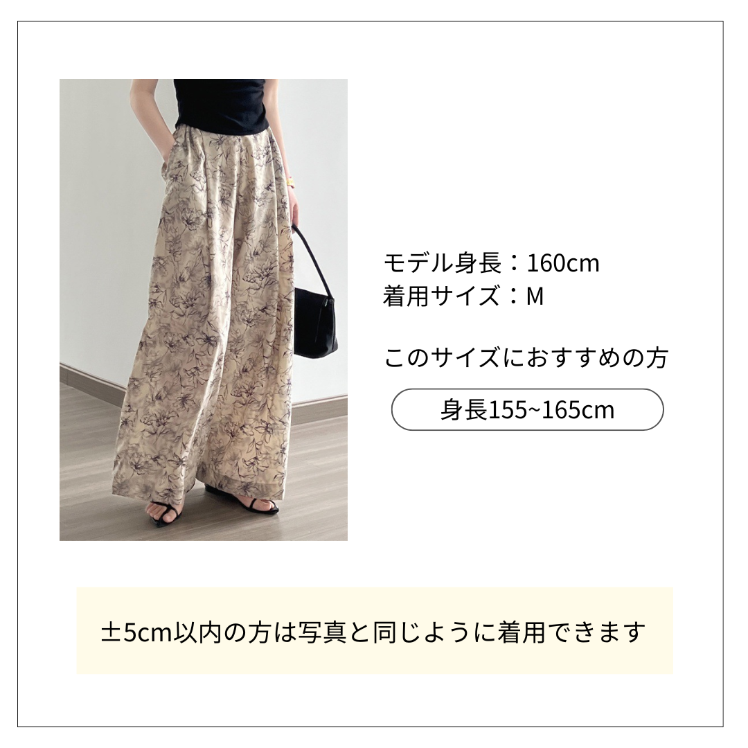 流れるような線描きの花柄が印象的なワイドパンツ。 花柄ファッションの中でも上品な雰囲気を演出し、黒のトップスと合わせれば洗練された大人の装いに。 花柄レギンスカテゴリーの中でも特に動きやすく、日常使いからお出かけまで幅広く活躍します。