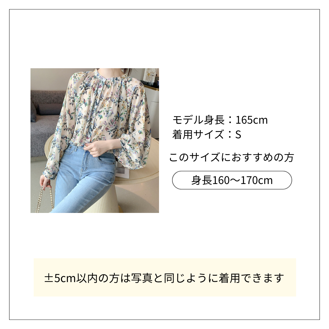 花柄ファッションの定番アイテム、軽やかな印象の花柄シャツ / ブラウスです。 春の訪れを感じさせる繊細な小鳥と花々の模様が特徴的で、ふんわりとした袖のデザインが女性らしさを引き立てます。 ギャザーネックラインが上品な雰囲気を演出する花柄シャツ / ブラウスは、デニムとの相性も抜群です。