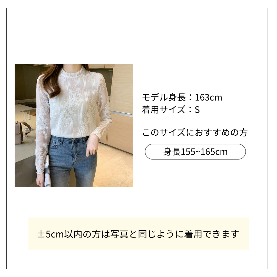 繊細な花刺繍が上品さを引き立てる半透明レースのブラウス。 立体的な花柄と縦のラインがスタイルアップを演出する花柄ファッションの逸品。 袖元まで丁寧に施された花柄デザインで、デニムと合わせた花柄シャツ / ブラウスコーディネートが映えます。