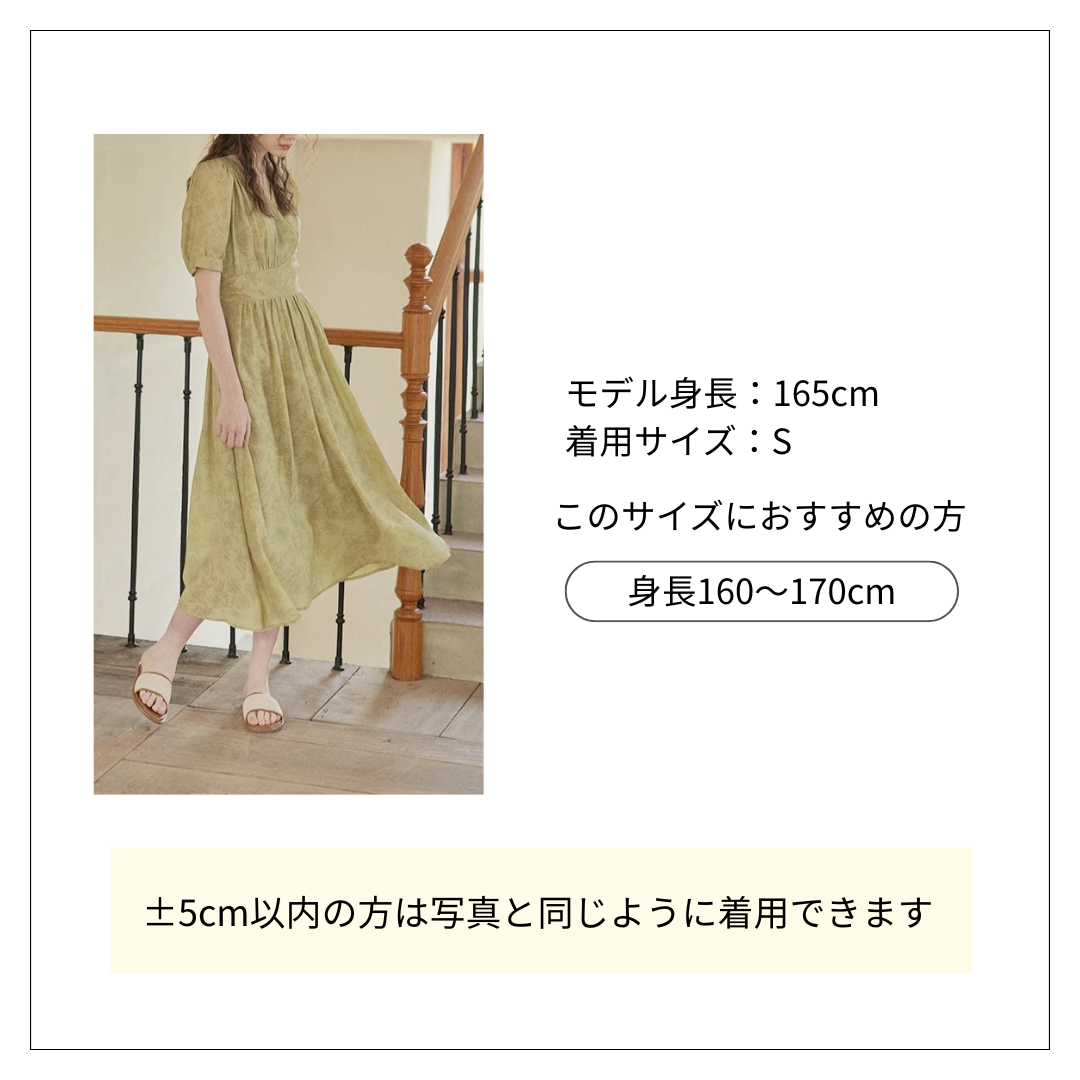 ウエストのリボンベルトが細見え効果を生み、優雅な着こなしを演出