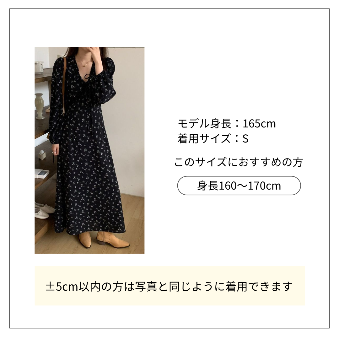 清楚な小花柄が全体に散りばめられた花柄マキシワンピです。 Vネックと袖のギャザーが女性らしさを演出し、ゆったりとしたシルエットで体型カバーも叶います。 花柄ファッションの定番アイテムとして、デイリーからお出かけまで幅広く活躍します。