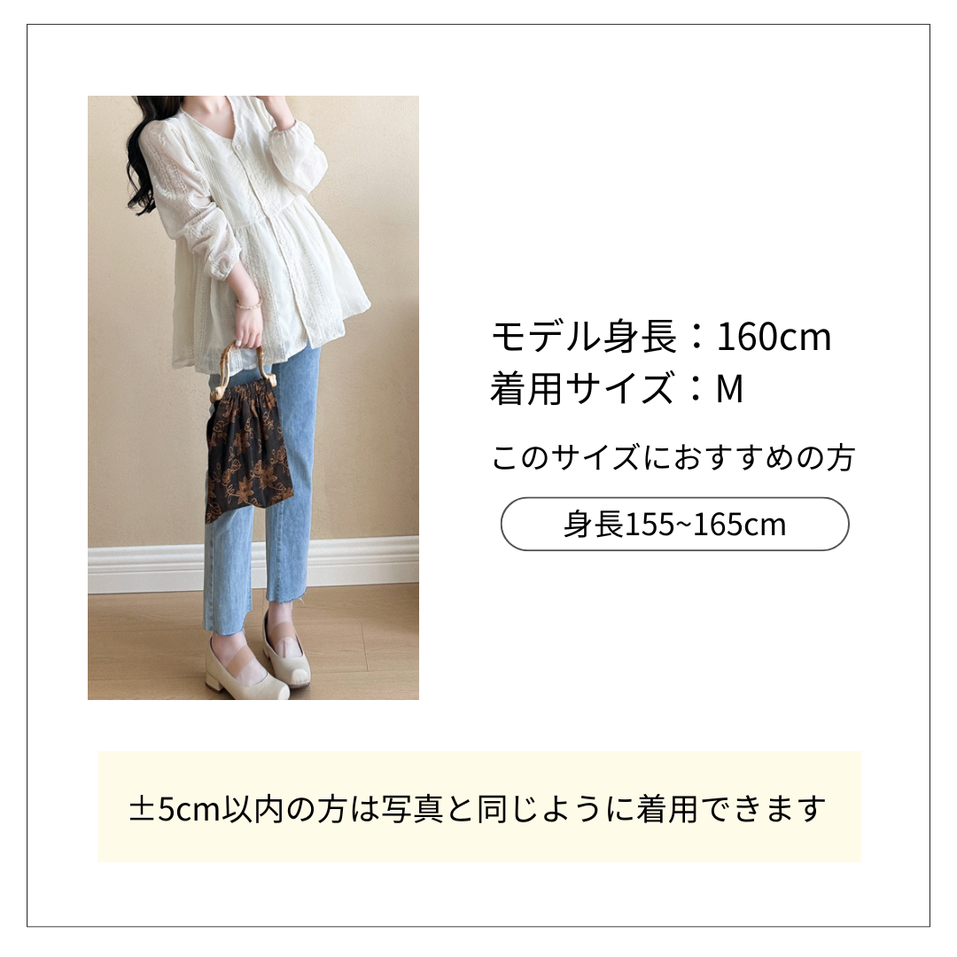 繊細な刺繍レースが魅力的な花柄チュニックです。 ゆったりとしたシルエットとふんわり袖が女性らしさを演出します。 花柄ファッションとしてデニムと合わせたカジュアルスタイルから、きれいめコーディネートまで幅広く活躍する一枚です。