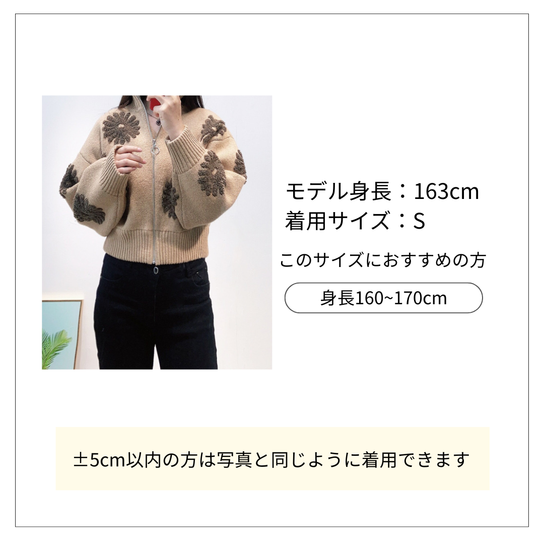 花柄ファッションを楽しむならこの一枚。 立体的な花モチーフが全体に散りばめられた花柄ジャケットは、存在感抜群のデザインです。 ふんわりとしたボリューム袖とショート丈のシルエットで、カジュアルにもきれいめにも着こなせます。 ジップアップタイプで着脱も楽々、秋冬のコーディネートに華やかさをプラスしてくれる一着です。
